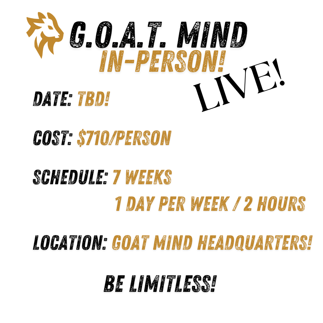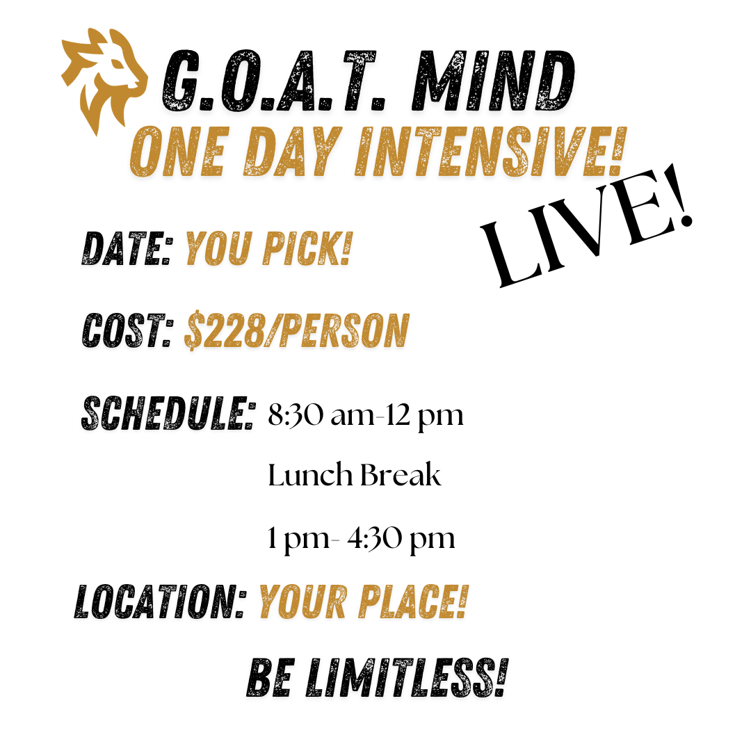 G.O.A.T. Mind Custom One-Day Intensive: Your Location, Legendary LaunchÂ